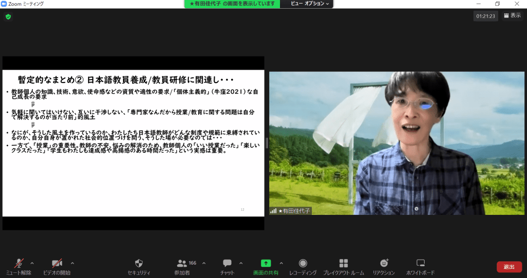 6月5日(日)に、「対話の場が育む日本語教師の仕事―新時代の日本語教員養成課程の中で―」というテーマで、シンポジウムが開催されました。今回もオンラインによる開催でしたが、170人のご参加がありました。
