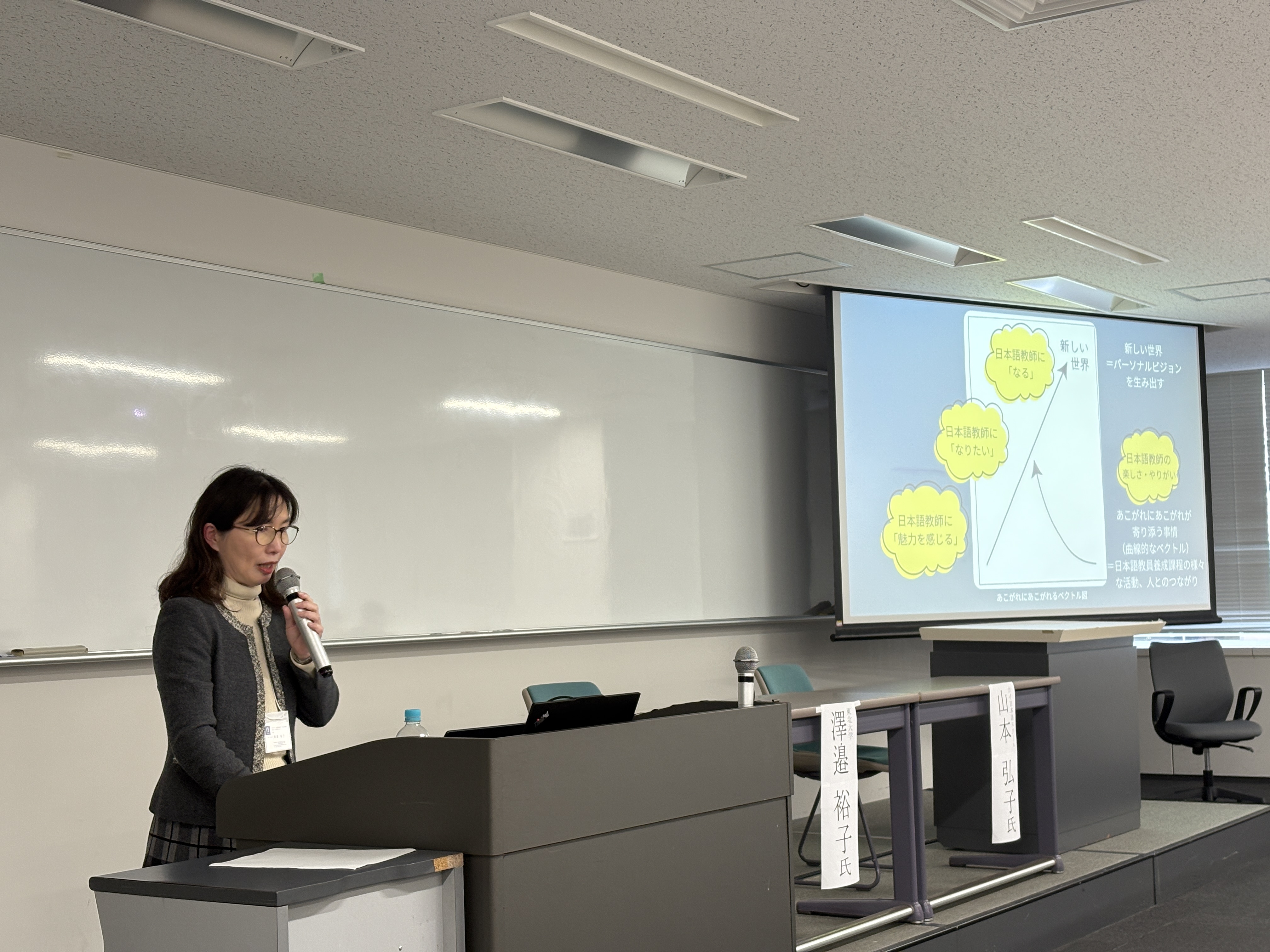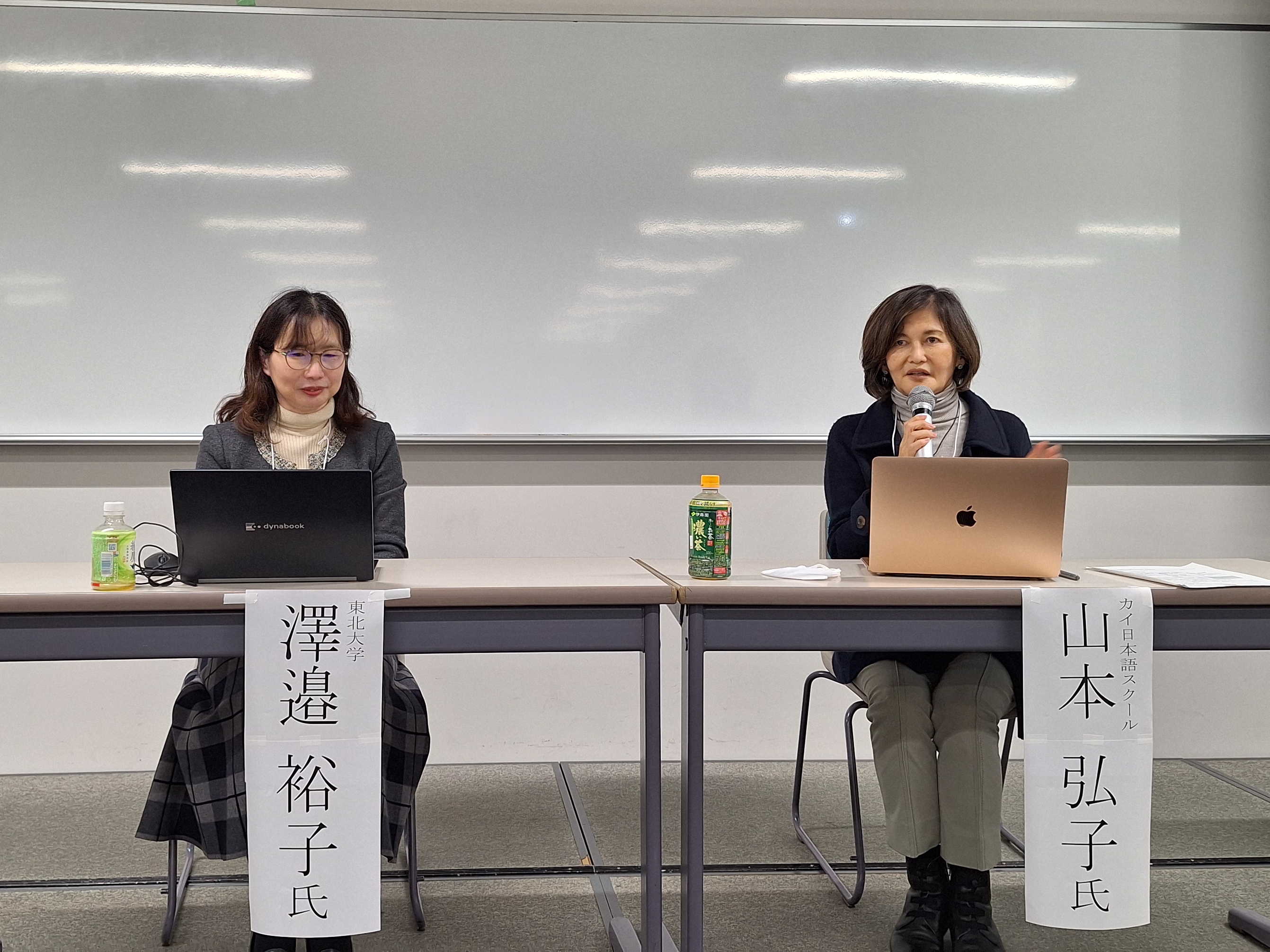 第Ⅱ部の企画フォーラムでは、まず、澤邉裕子氏(東北大学)および山本弘子氏(カイ日本語スクール)による話題提供が行われました。